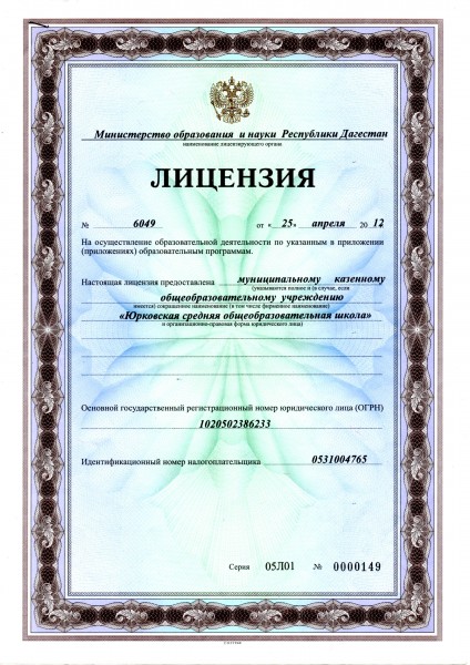 Полное наименование образовательной организации* Муниципальное казённое общеобразовательное учреждение "Юрковская средняя общеобразовательная школа" Тарумовского района Республики Дагестан