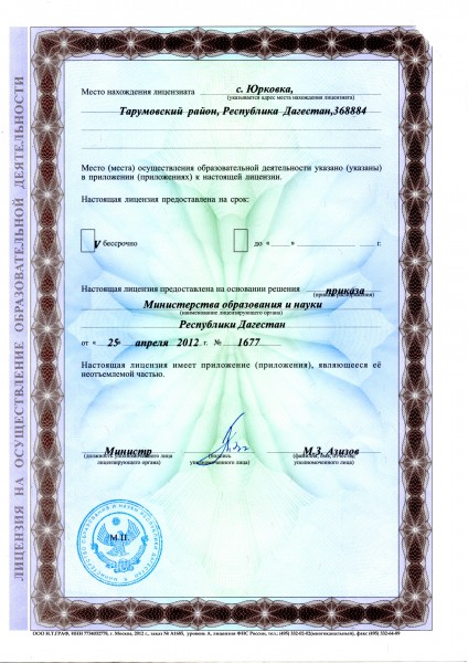 Адрес местонахождения образовательной организации* 368884, Республика Дагестан, Тарумовский район, село Юрковка, улица Советская